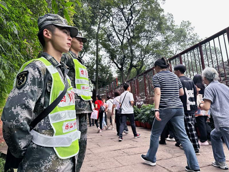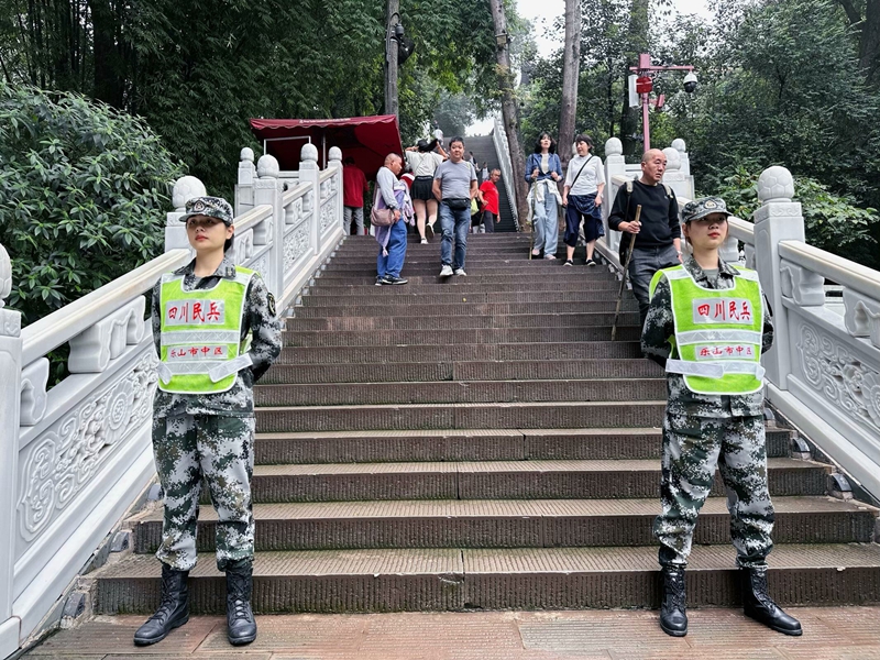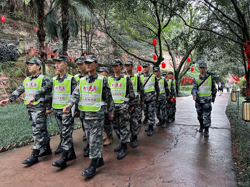 受乐山市中区武装部指派,beat365预备役民兵连51名民兵参加“国庆黄金周”大佛景区联合执勤,全力协助相关部门完成景区治安管控及其它综合勤务。