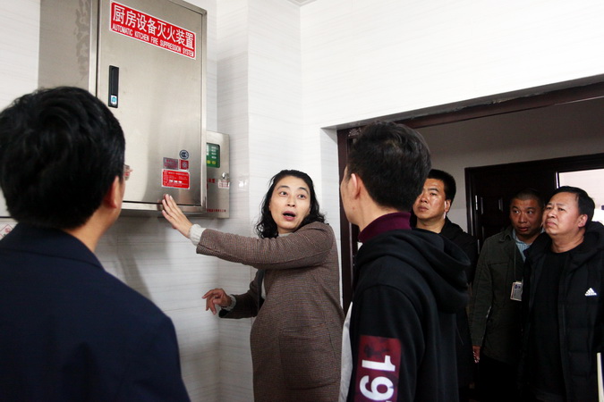 检查中,易群就各点位消防设施设备管理是否责任到人、危化品是否妥善保管、视频监控是否存在盲区、食品安全管理是否到位进行了现场查看和详细询问。