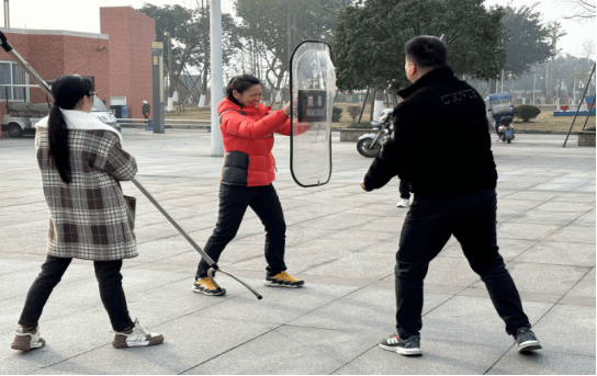 培训时,丁焌老师针对遇暴恐事件的处置流程、器材使用方法等进行了详细讲解,并结合实战开展现场演练。