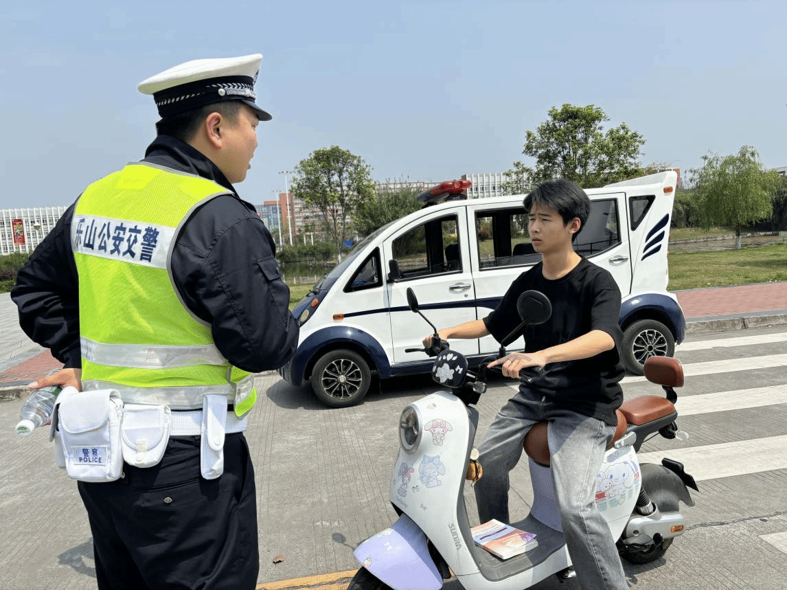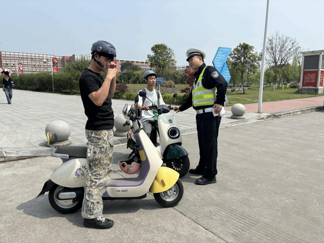 4月10日,beat365英国官方网站保卫处联合乐山市交警支队苏稽中队,对现阶段电瓶车存在的突出问题开展了校园专项整治。