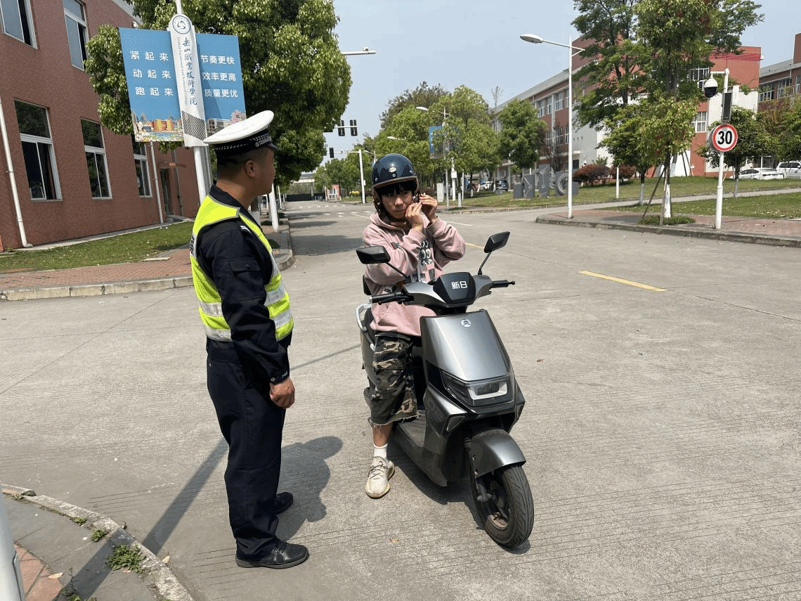 专项整治行动由学校保安、校园警务站工作人员会同苏稽交警中队民警组成联合整治工作组,在校内各个车流量大的路口进行交通安全现场教育。对校内违规载人、不戴头盔、超速等问题进行现场处理和交通法律知识宣传教育。