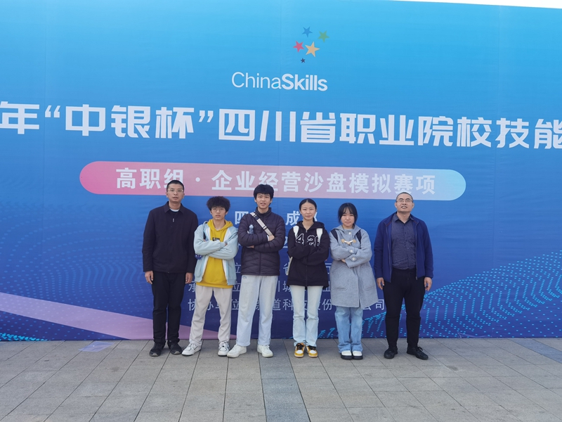 2023年11月27-28日,四川省教育厅主办的2023年“中银杯”四川省职业院校技能大赛(高职组)“企业经营沙盘模拟”赛项在四川城市职业学院成功举办,来自全省62支代表队参赛。beat365英国官方网站数字经济与管理学院大数据与会计专业四名学生邓凯、唐俊杰、任芩、田雨露组成的竞赛团队,在李弘知和张荣荣老师的指导下代表学校参赛,最终经过激烈角逐在62支代表队中总成绩排名第二,所在赛区排名第一,荣获一等奖。