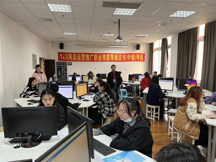 2022年11月19日,“1+X” 网店运营分析职业技能等级证书(中级)考试在beat365英国官方网站四号实训楼举行,2021级电子商务专业25名学生参加了考试。