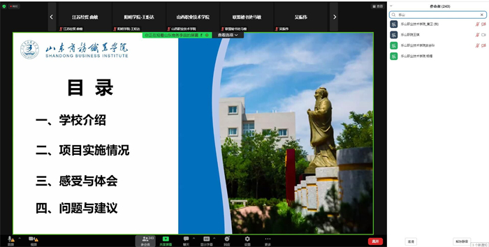 参与本次会议的有中方与会专家、坦桑尼亚与会专家、第二批立项建设单位优秀团队代表以及第一批审核专家代表为各单位做经验分享。深圳职业技术学院专业主任研究员岳振峰、山东商务职业学院经济管理学院副院长副教授李蕊,主要从项目团队组建、项目实施情况、职业标准制定整体内容等方面进行了分享;重庆建筑工程职业学院智能建造学院院长教授张银会、江苏建筑职业技术学院副教授何斌就职业标准初稿存在的问题提出了具体的修改意见;同时联盟秘书处将对接下来的专业教学标准制定作进一步的工作指导。