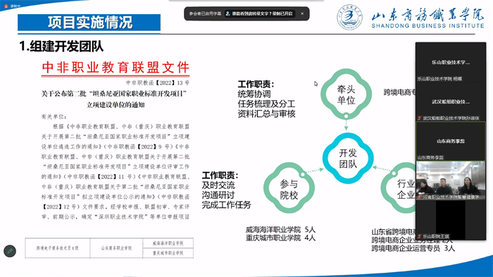 2023年3月17日下午,第二批坦桑尼亚国家职业标准开发项目第四轮专题研讨会通过Zoom会议举行。我院管理与商务专业群(教研室)主任杨媚、电子商务专业主任武会玲以及第二批坦桑尼亚国家职业标准开发项目团队全体老师参加了此次会议。
