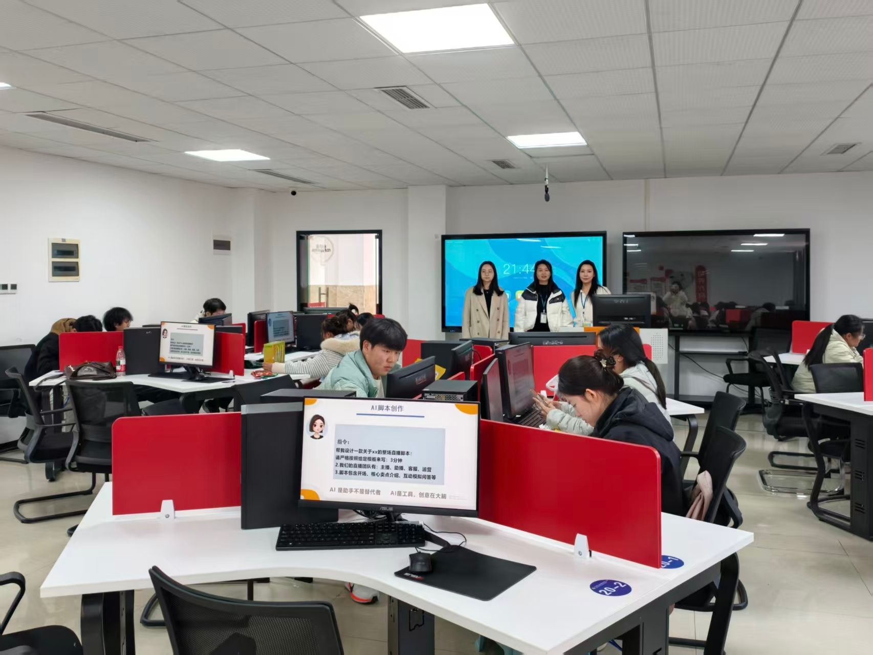 我院组建了由王萍、易秋甸、黎雨青、周乔4名教师构成的专项团队,为学生提供了系统指导及服务保障。课程结合参与实训学生的专业背景等情况,围绕“3D企业运营与直播实操”主题展开,旨在通过理论学习和实操演练,提升学生在现代商业环境中的综合实践能力。学生完整体验了企业创立、战略决策、生产运营及市场竞争的全流程,沉浸式感受到现代企业管理的复杂性与挑战性。还系统学习了电商直播带货的相关知识并进行了电商直播实操实战,进一步丰富了专周实训内容。活动现场气氛热烈,学生们表现出浓厚兴趣。
