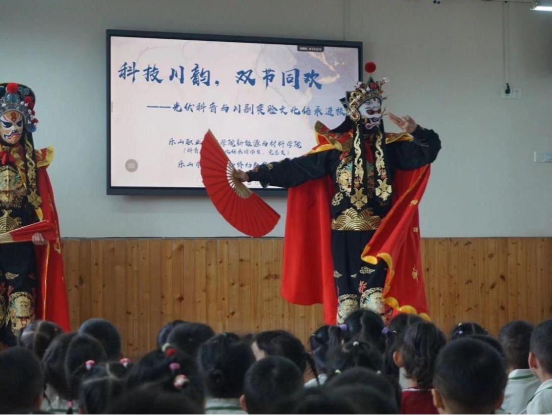 活动伊始,团队成员以“太阳的能量魔法”为主题开启光伏科普环节,用童趣语言配合动画短片将抽象的光能转化原理具象化。在动手实践环节,小朋友们化身“小工程师”,在团队成员指导下组装光伏小玩具,当看到自己拼装的玩具在阳光下缓缓启动时,现场满是惊叹与欢笑声。随后,川剧变脸表演将活动推向高潮,川剧变脸同学身着华丽戏服,红绸翻飞间色彩斑斓的脸谱瞬息万变,小朋友们睁着亮晶晶的眼睛紧盯表演,惊叹声与掌声此起彼伏。