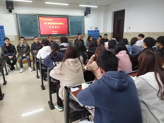 开班仪式后,张勇以《中国共产党的诞生和发展》为主题展开党课第一讲。张勇同志向同学们介绍了《国际歌》的来历、中国共产党的百年历史。引导学员们要珍惜现在的美好生活,坚定跟党走的决心,不断进步,积极向党组织靠拢,要坚定理想信念,坚信共产主义一定会实现,并始终不渝地为实现共产主义而努力奋斗。