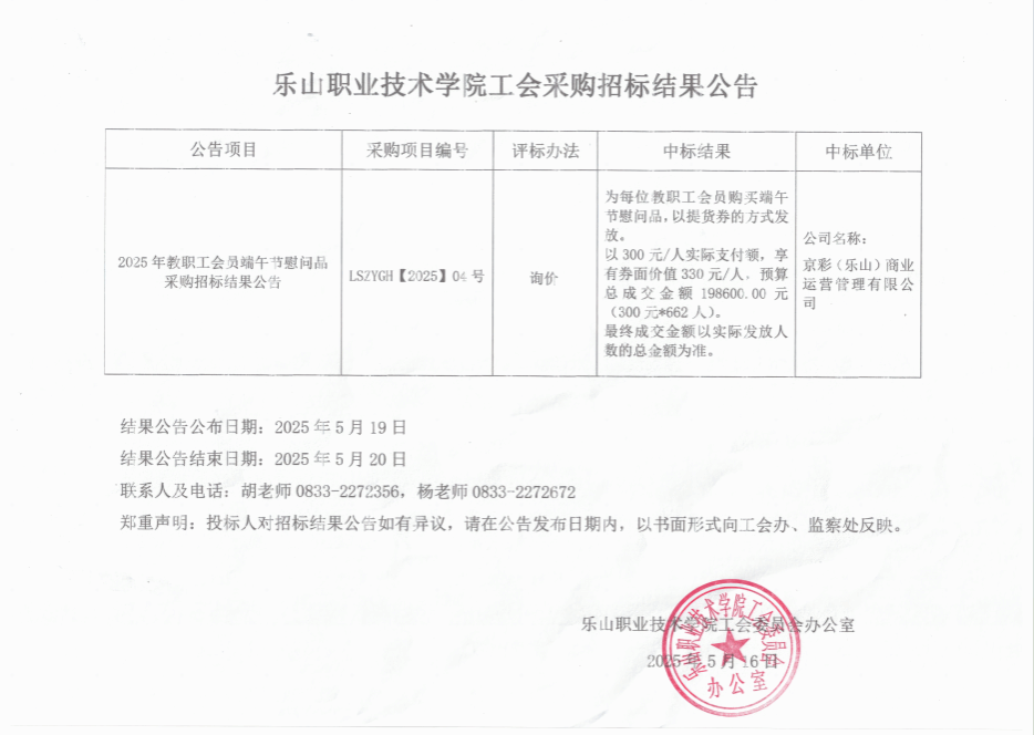 下一条:2025年教职工会员五一节慰问品采购招标结果公告