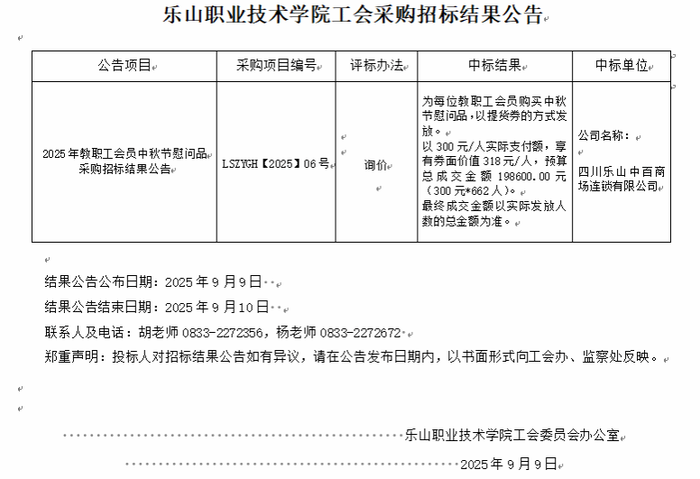 下一条:2025年教职工会员国庆节慰问品采购招标结果公告