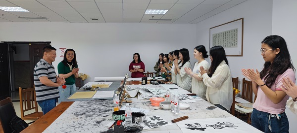 为进一步丰富教职工的业余生活,促进身心健康,促进和谐校园文化建设,校工会、校妇联特邀请乐山嘉州画院常务副院长兼秘书长袁艺老师走进乐职院,为教职工开设职工大讲堂讲座:《中国山水画艺术及其欣赏》。讲座于5月29日在学校职工之家书画室进行。袁艺老师深入浅出地剖析中国山水画的精神内涵,共同解读山水的无言之美。校工会副主席、校妇联主席黄晓莉,马克思主义学院党总支书记郑平参加了讲座,喜爱书画的教职工及书画协会学生聆听了本次讲座。