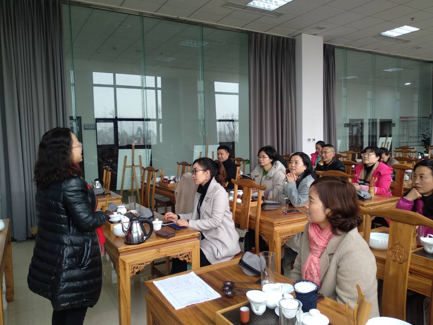 活动中,周晓红分享了六大茶分类的依据及基本特点,并让大家识别;然后,使用不同种类的茶具进行冲泡、品鉴,活动采用一边品尝,一边讲解的方式,让课堂生动有趣,使大家收获颇丰。刘瑛为大家分享了茶艺礼仪与表演技能,让大家近距离感受到茶艺的魅力。