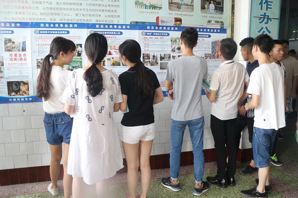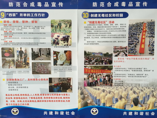 “防范合成毒品宣传”通过禁毒挂图宣传展示的形式,介绍合成毒品的危害,宣传合成毒品的有关知识及国家有关禁毒的法律法规。同时,画报以具体实例教育、感染师生们:毒品不仅危害社会、危害个人和他人健康,还会毁灭家庭!看着那些触目惊心的照片,同学们无不发出阵阵惊叹,并表示坚决不会沾染任何毒品。