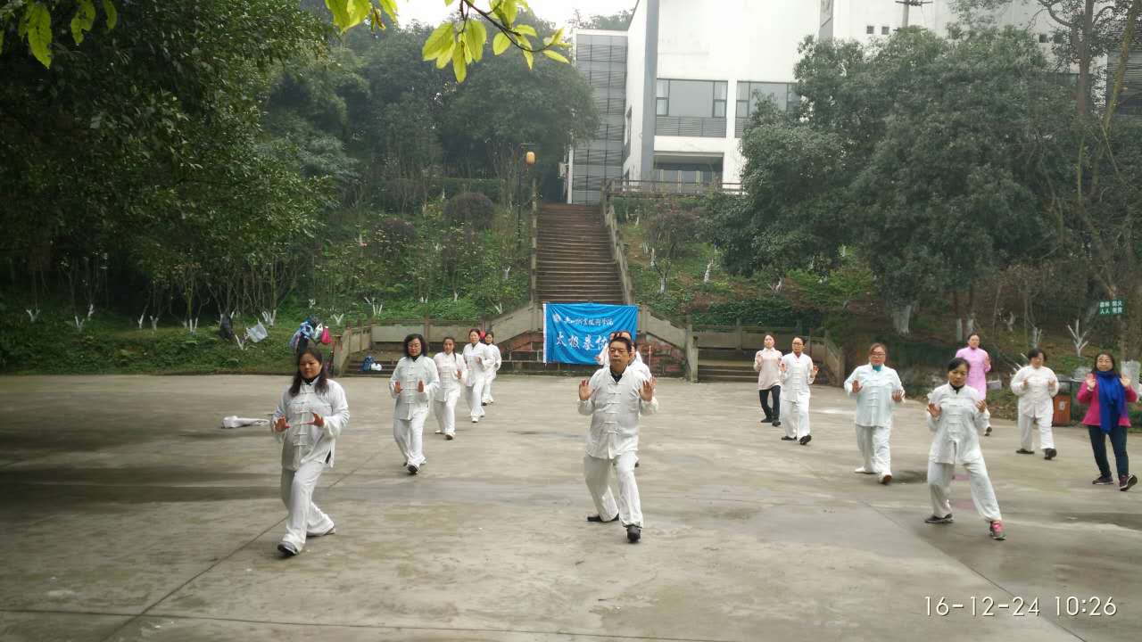 2016年12月24日,学院太极协会会员在市中区鱼耳湾公园举行了年终展演赛。学院工会副主席罗宣祝、协会会长黄晓莉及全体会员22人参加了活动。