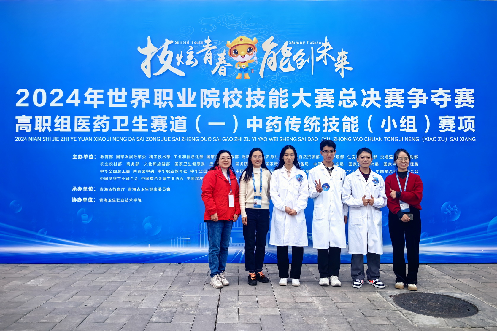 10月28日至31日,2024年世界职业院校技能大赛总决赛争夺赛高职组医药卫生赛道(一)中药传统技能(小组)赛项在青海卫生职业技术学院举行,来自全国的55支队伍同台竞技。经过激烈的角逐,beat365英国官方网站生物医药学院教师郑佳、兰英指导的中药学专业学生朱灿、税川斯文、汪怡莲团队获得铜奖。