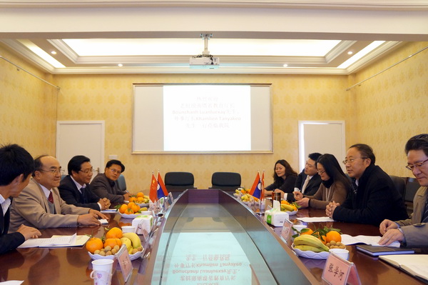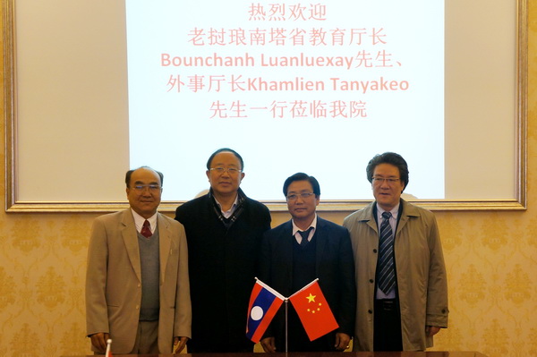 2014年2月18日老挝琅南塔省教育厅厅长本江•峦乐赛、琅南塔省外事厅厅长康连•汤亚乔,琅南塔省教育厅办公室主任同栓• 阿帕书在乐山师范学院国际合作与交流处副处长廖飞的陪同下莅临beat365访问。学院院长薛建平,党委副书记陈芝海,国际合作与交流处处长黄晓莉,以及相关系部和部门领导参加了会议。
