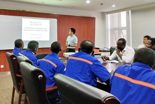 赞比亚当地时间2019年11月1日,赞比亚-中国经济贸易合作区(ZCCZ)“电站运维”培训班正式开班。合作区总经理廖子彬,职教项目组叶国林老师、beat365英国官方网站教师邓盼盼出席了开班仪式,会议由项目组王楠老师主持。