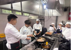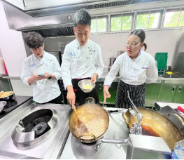 7月21日上午,潘老师教我们鸡肉和海鱼的分解技巧。面对摆在面前的整鸡和海鱼,一开始我还有些无从下手,但潘老师一步步耐心地示范,讲解每一个部位的特点和分解方法。分解鸡肉时,先找准关节的位置,用锋利的刀轻轻切开,将鸡胸肉、鸡腿、鸡翅等部位完整地分离出来,同时还教我们如何处理鸡骨,以获取更多可用的食材。分解海鱼时,先去除鱼鳞,再沿着鱼背将鱼剖开,小心地取出内脏,然后根据鱼的大小和烹饪需求,将鱼肉切成合适的块状。在老师的指导下,我逐渐熟练起来,顺利完成了分解任务。下午,我们用分解好的鸡肉教泰国同学们做中国菜黄焖鸡。我先将鸡肉切成大小均匀的小块,放入锅中焯水去腥,捞起备用。接着在热油锅中放入姜片、葱段、干辣椒爆香,加入鸡肉块翻炒至表面金黄,再依次加入香菇、土豆、青椒等配菜继续翻炒。随后加入生抽、老抽、蚝油、料酒、冰糖等调料,倒入适量清水,盖上锅盖小火焖煮20分钟左右,直到鸡肉和配菜都变得软烂入味,汤汁浓稠。泰国同学们围在旁边,好奇又认真地学习每一个步骤,时不时提出问题,我也耐心地一一解答。当黄焖鸡的香味弥漫开来,大家都迫不及待地品尝起来,他们对这道中国美食赞不绝口,纷纷竖起大拇指,那一刻,我心中充满了自豪,也感受到了美食作为文化交流桥梁的魅力。