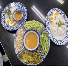 7月16日上午,阳光透过厨房明亮的窗户洒在操作台上,我们怀着期待的心情迎来了泰式炒面制作课程,授课的是亲切又专业的艾老师。制作前,艾老师先为我们展示了所有食材,有泡发好的泰国干米,色泽粉嫩、新鲜饱满的大虾,散发着独特气息的泰式鱼酱,还有鲜鸡蛋、泰式辣椒酱、豆腐、腌制甜萝卜等丰富配料 。在艾老师细致的讲解下,我们正式开始动手。我先将新鲜的大虾去皮,把鲜鸡蛋打碎在碗里备用,再把豆腐切成1厘米见方的小方块,将中国细葱切成3厘米长的葱段,洗净的豆芽放在一旁。调制秘制泰式调味汁时,把罗望子糊、椰糖、泰式鱼酱、泰式辣椒酱一起放入平底锅,小火焖煮5分钟,期间那独特又浓郁的香味不断飘散出来,勾得人食欲大增。接着起油热锅,放入处理好的虾快速翻炒,直至虾肉变成诱人的红色,随后加入泡发好并沥干水分的面条和打碎的鸡蛋,不停搅拌,让鸡蛋均匀地裹在面条上并充分煮熟。再依次加入虾干、豆腐以及提前用水焯熟的萝卜,充分搅拌几分钟后,放入葱段、豆芽以及调制好的秘制调味汁,继续烧煮几分钟,让食材完全入味,最后滴入少许鲜鸡汁提鲜。起锅装盘,撒上研磨好的花生碎末,一盘色香味俱全的泰式炒面就完成了。品尝着自己亲手制作的泰式炒面,酸甜香辣的丰富口感在舌尖上跳跃,真的超级满足。