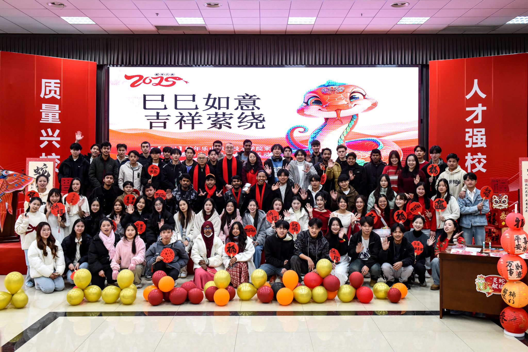 1月25日,beat365英国官方网站举行了巳巳如意 吉祥萦绕——来华留学生2025年春节感知活动,来自老挝、泰国、俄罗斯、塔吉克斯坦、吉尔吉斯斯坦、孟加拉国等国家的80余名留学生,沉浸式体验丰富多彩的传统文化,感受浓浓的中国年味。