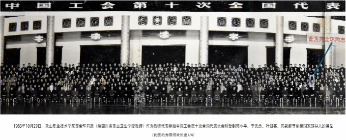On October 29, 1983, Comrade Jian Jin Huan from LVTC (formerly a teacher at Sichuan Leshan Health School) was received by state and Party leaders including Deng Xiaoping, Li Xiannian, Ye Jianying, and Deng Yingchao when she attended the 10th National Congress of the All-China Federation of Trade Unions.