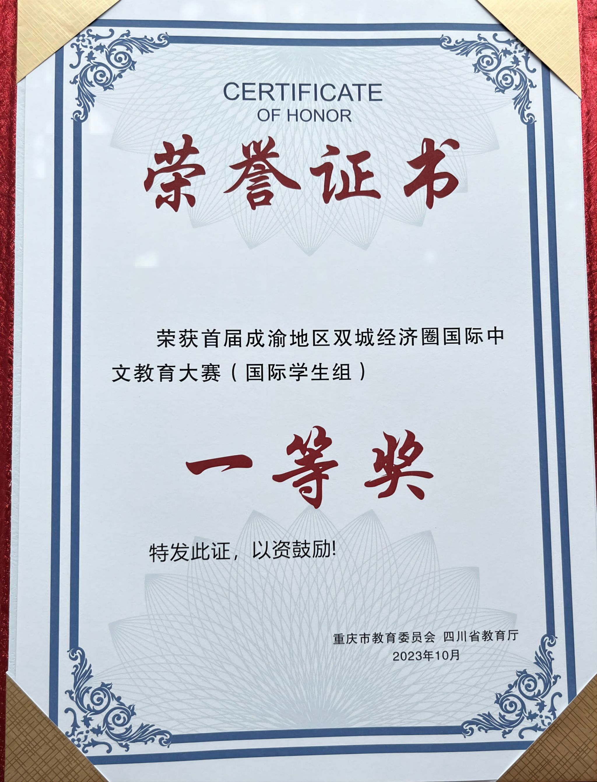 International Students from Our University Win First Prize in the "First Chengdu-Chongqing Economic Circle International Chinese Education Competition"