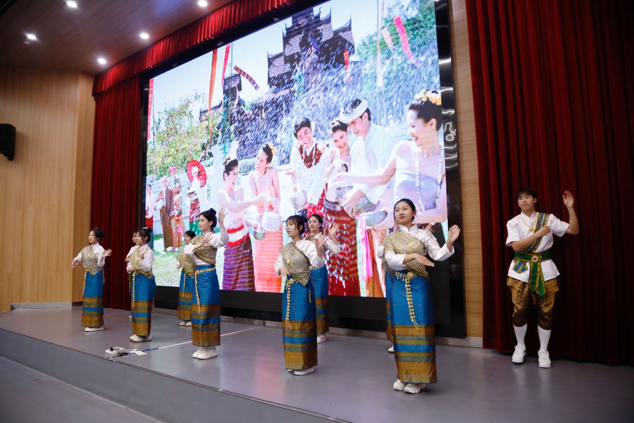 During the event, Thai international students and Thai language major students from Neijiang Normal University and Chengdu University took turns to perform on stage. They presented a medley of Thai dances, the dance "Celebrating Songkran," the playing of the Thai butterfly harp, and traditional Thai dances, offering the audience a sumptuous feast of Thai culture. The event also featured Songkran blessing ceremonies, water-splashing activities, and Southeast Asian food tasting, all of which were filled with festive joy.