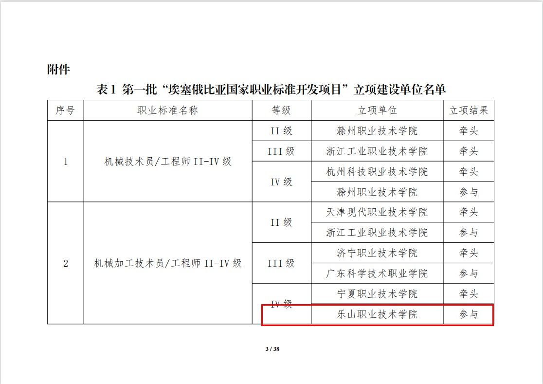 On April 23, 2023, the China-Africa Vocational Education Alliance announced the first batch of construction units for the "Ethiopian National Vocational Standards Development Project." After the school's application, preliminary review by the alliance, expert evaluation, and public announcement, Leshan Vocational and Technical College was designated as the leading unit for the Level 3 Nursing Technician/Engineer standard and the Level 3 Animal Breeding Technician/Engineer standard, as well as a participating unit for the Level 4 Mechanical Processing Technician/Engineer standard.