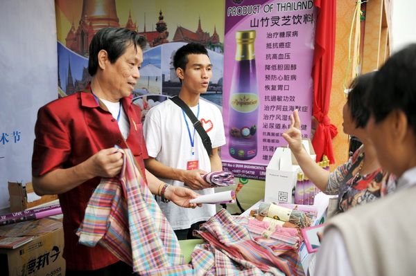 In the Jiazhou Scroll exhibition area, it was easy to spot clusters of exhibition booths from Southeast Asian countries, with numerous merchants from Thailand, Laos, Vietnam, and other nations. Exhibitors speaking Thai, Lao, and other languages added an international flair to the expo, but also made language translation a key issue. Leshan Vocational and Technical College, in its efforts to enhance its educational capabilities and student quality, has long strengthened cooperation and exchanges with international institutions and attracted a large number of Southeast Asian international students from Laos and Thailand. These students, ranging from exchange students to degree-seeking students and from freshmen to seniors, are diligent, honest, and resilient. Some have been studying and living in Leshan for 2 or 3 years and can speak fluent Mandarin, while a few have even mastered the local Leshan dialect. The exhibitors in the Southeast Asian section were in urgent need of such translation talent. Similarly, the young people also needed opportunities to serve society, improve their abilities, and challenge themselves. Therefore, the international students from Leshan Vocational and Technical College gladly accepted this challenge. Through their cooperation with the expo organizing committee, exhibitors, and various participants, the students gained valuable experience, making the expo more lively and orderly, like a beautiful flower blooming in the golden autumn.