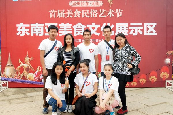 At the expo, people enjoyed song and dance performances, tasted delicious food, and browsed through a dazzling array of products. However, few might have noticed the smiling faces of the service providers. They were not eye-catching, usually just nodding and smiling at the bustling crowds, their smiles fleeting in people's sight. Yet it was these seemingly insignificant smiles that filled the entire expo with a warm and beautiful atmosphere. Among them was a group of young people with distinctly Southeast Asian features, wearing white T-shirts with the logo of youth volunteers, moving around the Jiazhou Scroll exhibition area. They were international students from Leshan Vocational and Technical College.