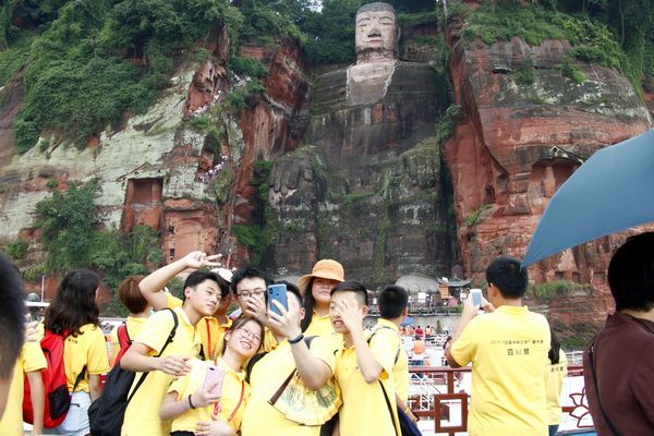 With birds singing and cicadas chirping, and under the backdrop of blue skies and white clouds, the participants of the 2019 "China Roots - Seeking Journey" Summer Camp in Leshan, Sichuan, set off from the Academic Exchange Center of Leshan Vocational and Technical College, heading to their first destination for sightseeing and learning: the Leshan Giant Buddha Scenic Area. On the afternoon of August 4, 134 Chinese - descendant teenagers gathered at the Baxian Cave Dock under the guidance of their college counselors, eagerly anticipating their first sight of the world's largest Buddha statue—the Leshan Giant Buddha.