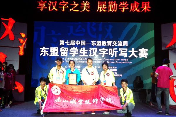 On the morning of September 4th, five international students from Laos representing Leshan Vocational and Technical College participated in the "7th China-ASEAN Education Exchange Week ASEAN International Students Chinese Character Dictation Competition" held at Zunyi Normal College in Guizhou. Our college achieved an outstanding result in the team competition, winning the second prize, while international student Li Baohua won the third prize individually.