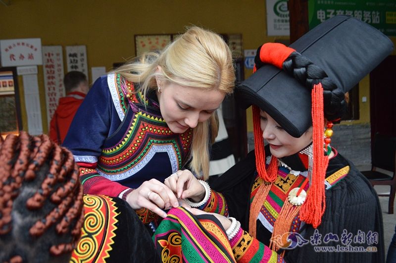 Tasting delicious food, admiring beautiful scenery, learning Yi embroidery, and forming bonds with the Yi people... On December 1st, foreign teachers and international students from Leshan Vocational and Technical College visited the picturesque Ebian Yi Autonomous County for an exchange visit, immersing themselves in the unique cultural allure of the Yi ethnic group.