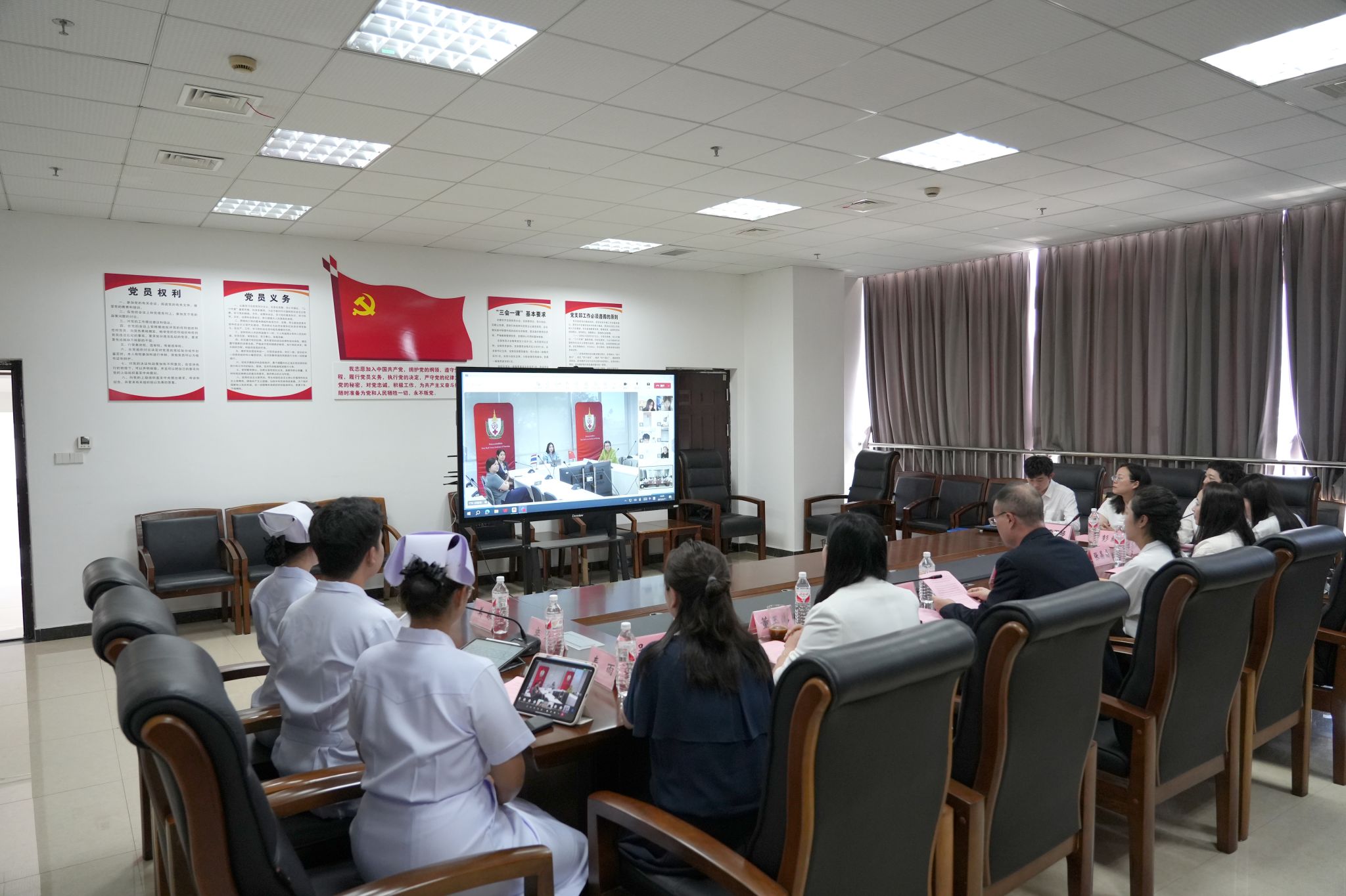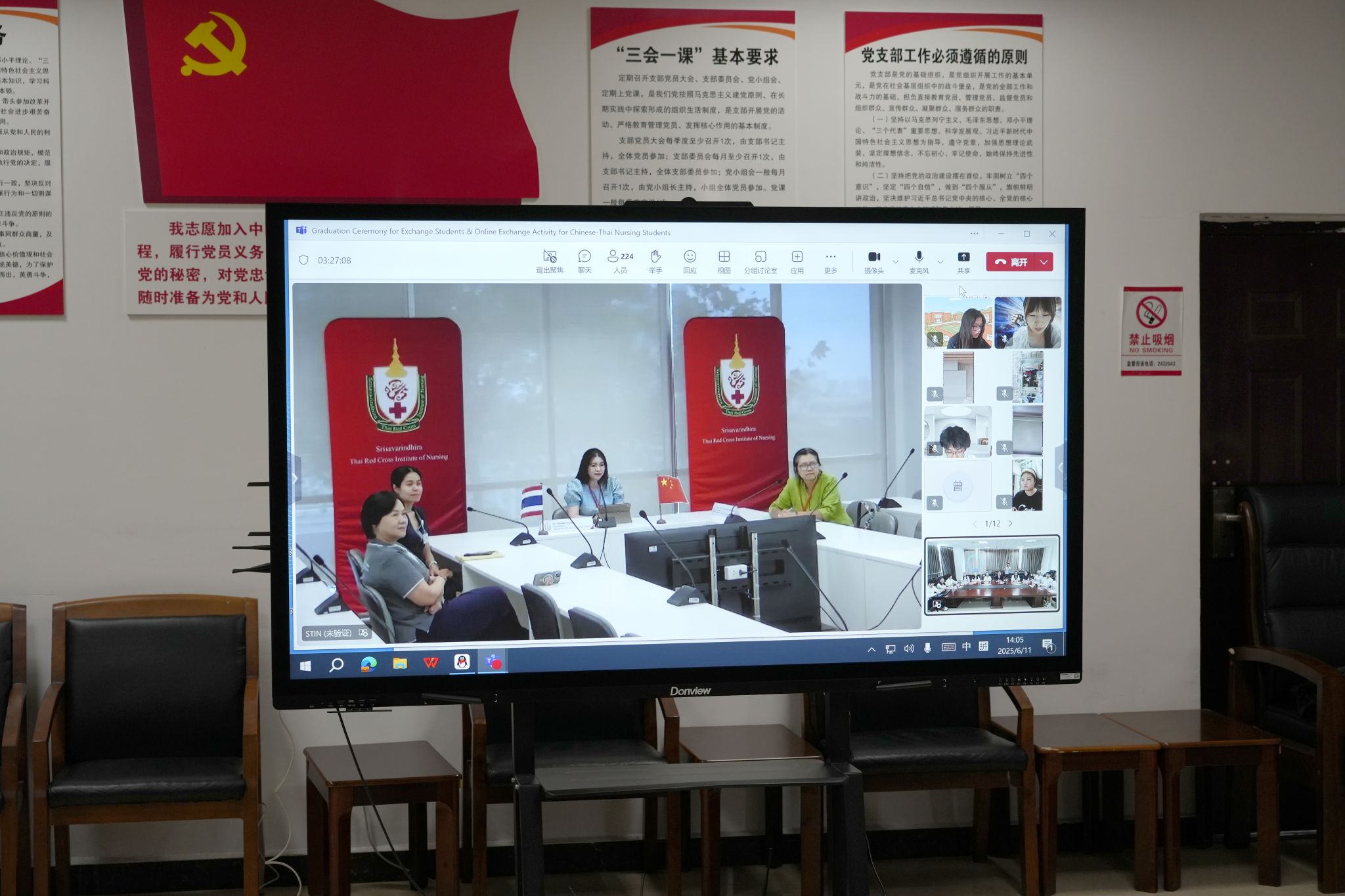 2025年6月11日下午14:00-16:30,泰国交换生结业仪式暨中泰护理专业学生线上交流活动顺利举办。beat365英国官方网站校长刘忠,泰国红十字护理学院领导及教师代表,beat365英国官方网站护理康养学院领导及教师代表,泰国交换生,两校护理专业学生共同参加此次活动。来自中泰两国的师生代表相聚云端,以专业为桥、以文化为媒,共谱护理教育国际交流新篇章。