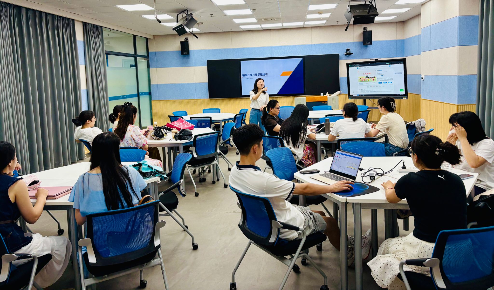 培训紧密围绕教学资料规范、教材开发建设、课程资源建设三大核心内容展开,采用理论讲座与互动研讨相结合的方式。在两天的时间里,教师们参加了多个专题培训,包括由彭瑶瑶、张巍主讲的教材建设培训,陈孜孜、陈曦主讲的在线开放课程培训,代琴、董玉洁主讲的课程思政与课堂革命典型案例培训,胡燕、罗昊主讲的金课与一流核心课程培训。此外,还专门安排了由周艳主讲的双创培训以及由张宇佳主讲的辅导员工作案例培训,覆盖了不同教师群体的需求。