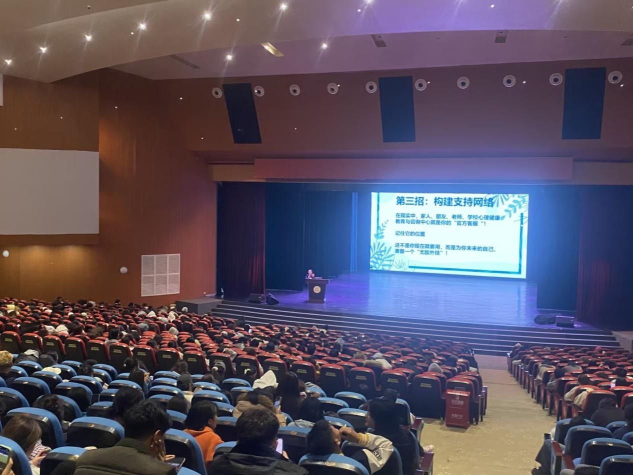 为提升新生心理健康素养,积极适应大学生活,充分加强医校合作,2025年10月29日,护理康养学院特邀国家二级心理咨询师、国家三级健康管理师、乐山市心身医院专家、青少年生涯规划导师张媛老师到校,以“新征程‘心’起点”为主题,为护理康养学院2025级和高职22级开展“大一新生适应性心理健康教育”讲座。本次活动在学校礼堂举行,由护理康养学院团委学生会心理健康部承办。