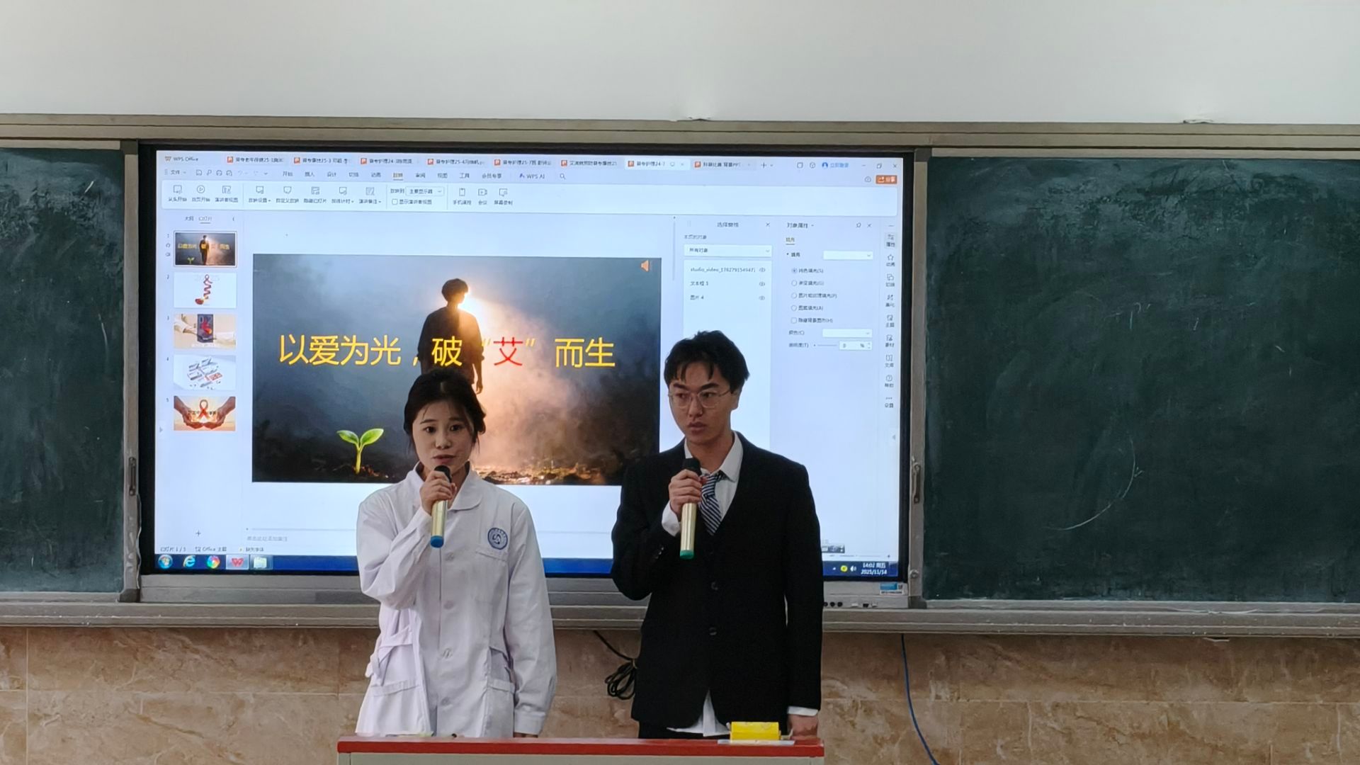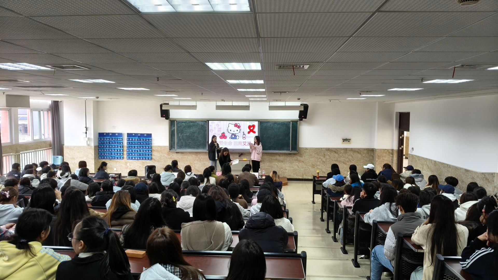 决赛前,学院团委学生会学习部精心组织赛前培训与现场彩排,从演讲技巧、时间把控到设备配合给予全方位指导,助力选手以最佳状态应战。决赛当日,二百余位学生代表齐聚现场,座无虚席、气氛热烈。15组选手依次登台,结合专业知识深入浅出解析防艾要点,通过情景剧、创意解说等多元形式传递健康理念。选手们PPT文稿图文并茂、言辞表达真挚恳切,既有对医学常识的精准阐释,也有对弱势群体的深情关怀,每一场展示都博得台下阵阵掌声。评委老师从主题与内容、PPT制作、现场演讲效果、创意延伸等多维度切入,项目负责人毛老师在点评中也表示这不仅是一场比赛,更是一堂走心的健康公开课。
