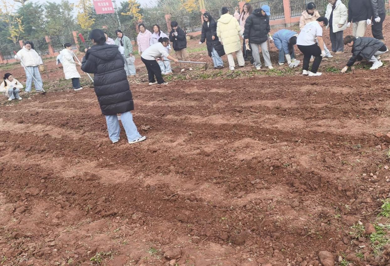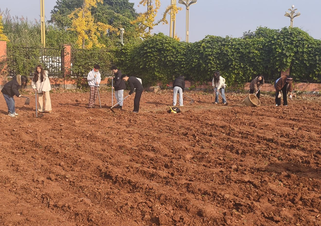 进入十一月,为给播种创造更好的土壤环境,师生们携手生活部成员开展了第二轮精细化整治。大家不仅彻底清理了残留杂草,还将埋藏在土中的碎石、杂物逐一拾出。生活部同学边分发工具边耐心讲解要领,并通过线上平台分享油菜种植的实用视频。手握锄头、镰刀的同学们干劲不减,弯腰劳作的身影随处可见,搬运草石的任务也在欢声笑语中高效完成。经过连续奋战,原本杂乱的土地变得松软平整、井然有序,一粒粒油菜籽被轻轻播入土中。望着自己亲手整理的土地和撒下的种子,同学们眼中满是期待,仿佛已看见来年春天那一片灿烂的金黄。