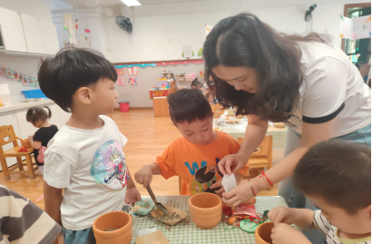 认识完药材后,小朋友们化身“小小药师”,在周老师的带领下,投入到香囊制作的乐趣中,大家按照称量药材、捣碎药材、分装粉末、创意封口的流程完成了自己专属的中药驱虫香囊,完成的香囊悬挂于教室、寝室窗边用于赶走蚊虫。
