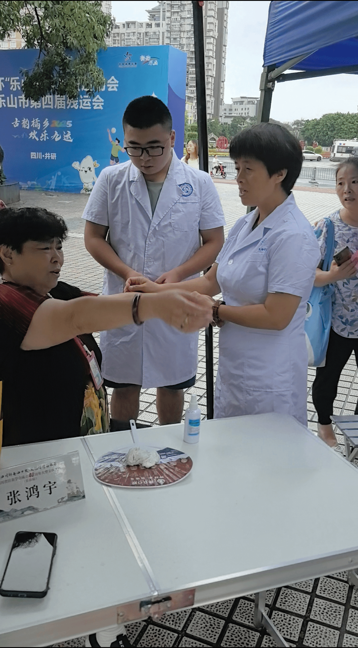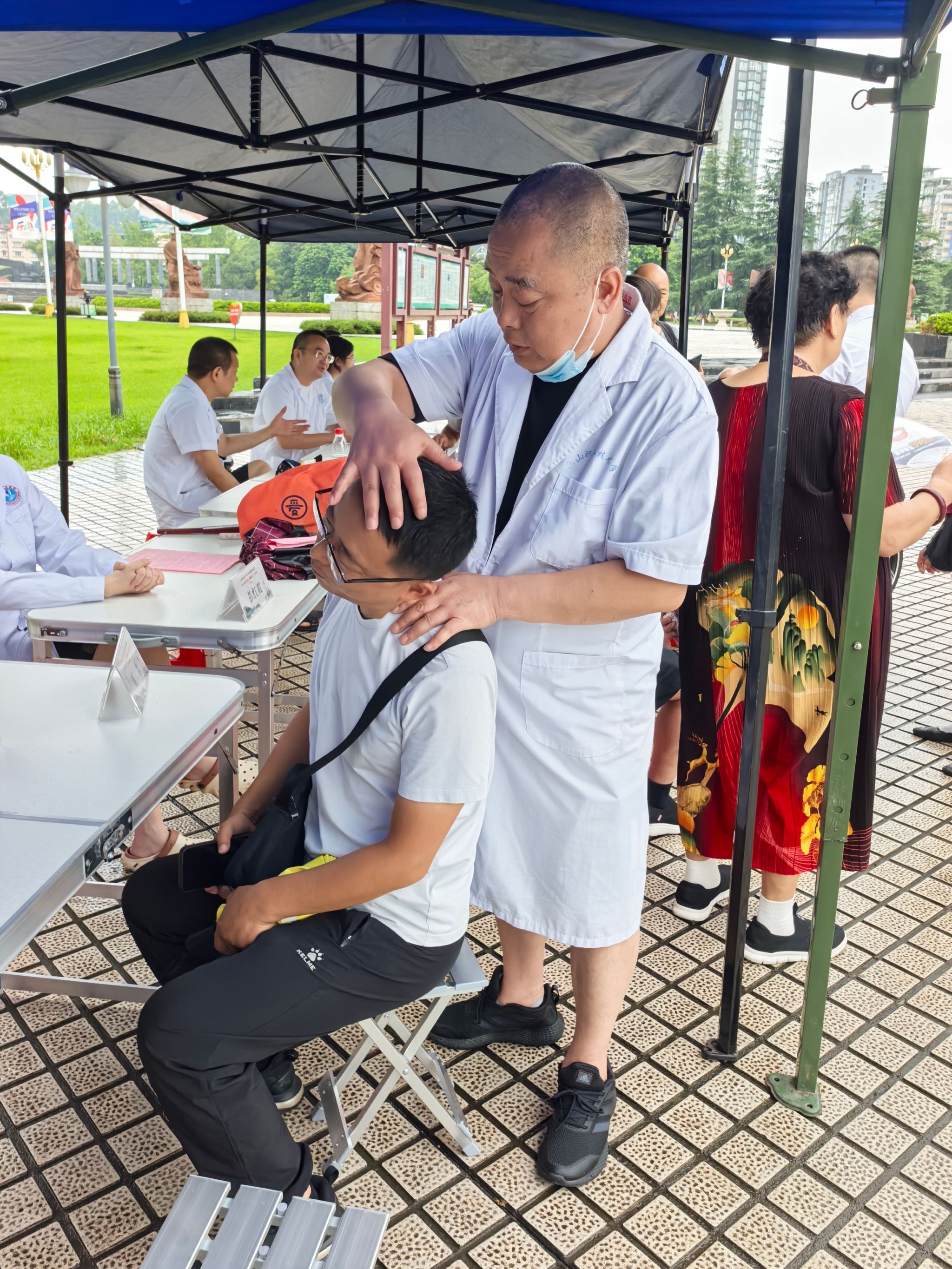 活动现场,来自乐山市多家医院的医护人员共同为市民服务,护理康养学院的周兵、张鸿宇、邱科三位教师也迅速投入到忙碌的义诊工作中。为近200位市民提供了针灸诊疗、健康咨询等服务。他们用实际行动践行着医者仁心,不仅展现了护理康养学院教师的专业素养,也为传承和弘扬针灸医学贡献了自己的力量。