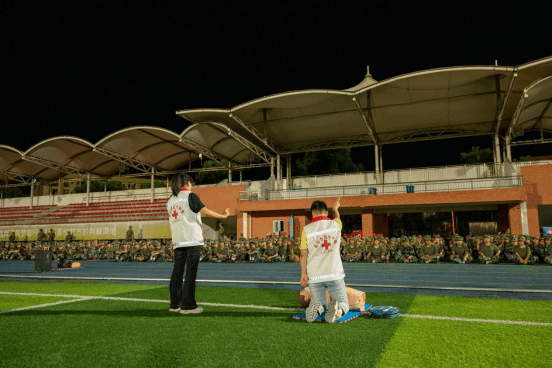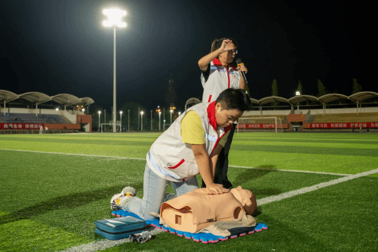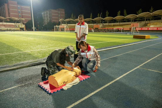 2025年9月23日晚20时,beat365英国官方网站主操场灯火通明,一场以"生命教育·救在身边"为主题的应急救护知识普及培训活动在此举行。本次活动由学院红十字会主办,旨在贯彻落实《健康中国2030规划纲要》,将红十字"人道、博爱、奉献"精神深度融入新生入学教育。护理康养学院党总支副书记吴丽虹、副院长张磊亲临指导,8名持证应急救护培训师带领20余名学生志愿者,为2025级全体新生带来一堂生动的生命教育课。