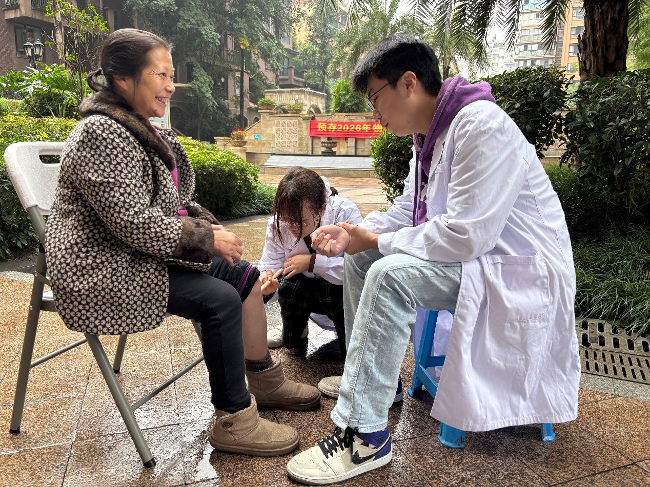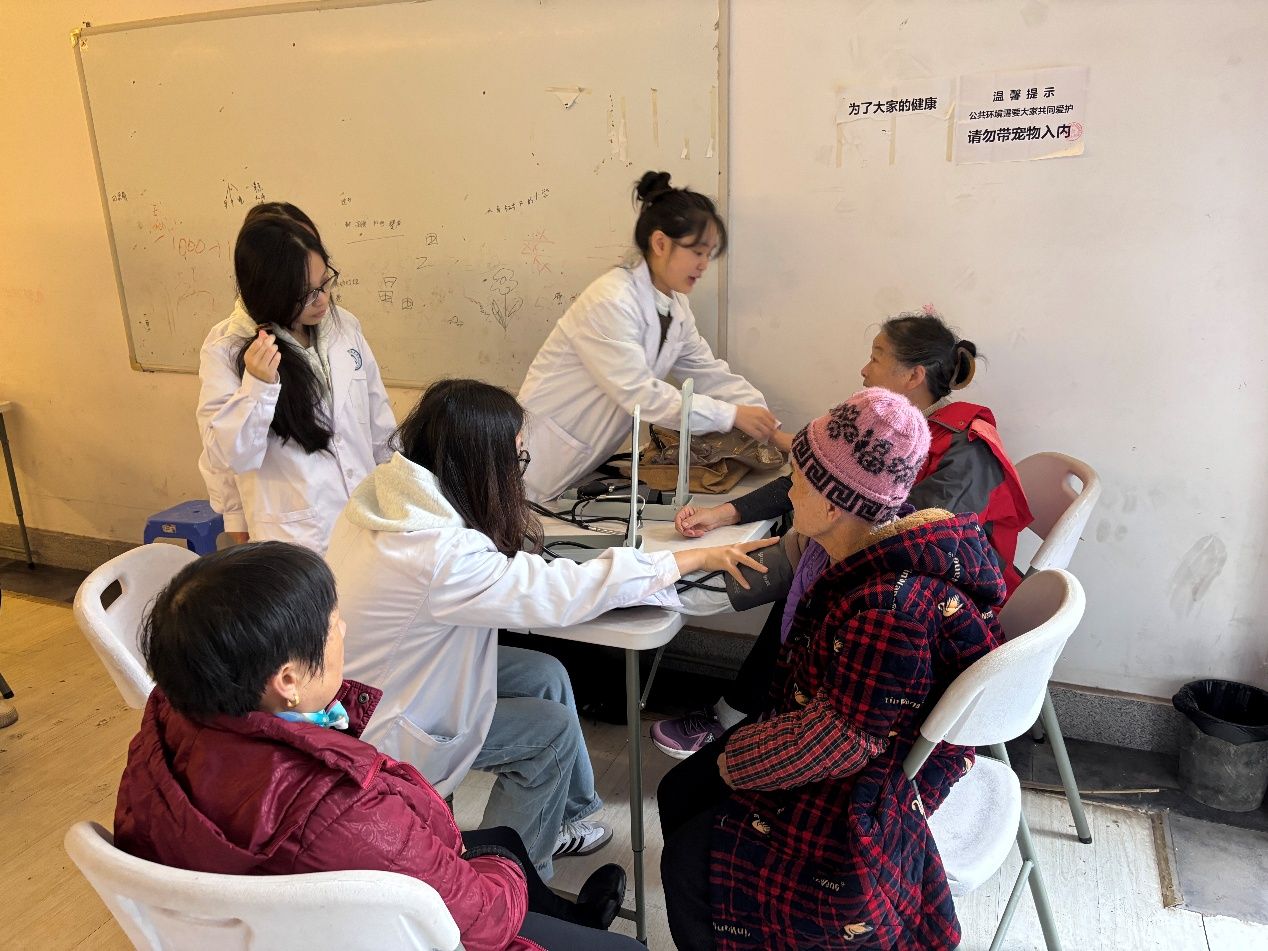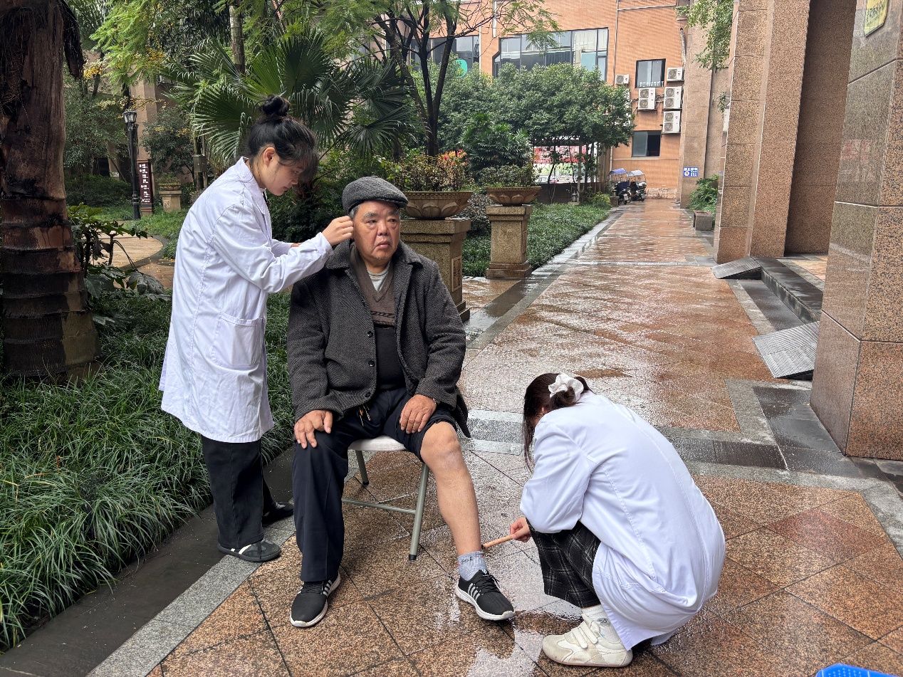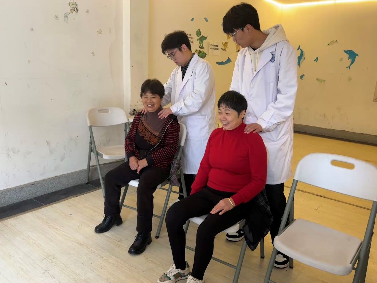 活动当天,志愿者们提前布置好场地,设立了血压检测、艾灸、按摩和耳贴四个服务站点。首先,志愿者们为老人们测量血压,认真记录数据并提供相应建议;随后,他们针对关节疼痛、畏寒等问题,精准选取穴位进行艾灸调理和耳贴压豆,同时还帮助老人放松肩颈和腰背,有效缓解疲劳;最后,志愿者们整理现场,收拾桌面。