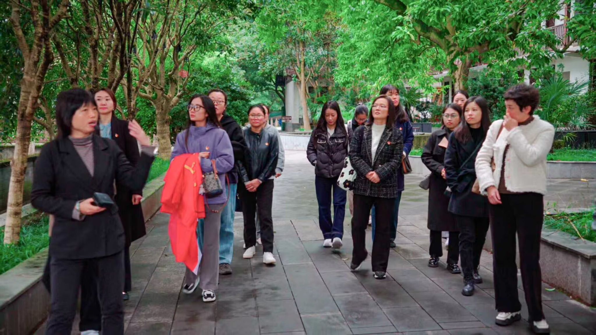 活动当天,党员集体乘车前往吴玉章纪念馆。在讲解员引导下,大家参观了故居、合葬墓及树人苑等区域,深入了解吴玉章同志的革命事迹与教育思想。参观结束后,支部组织开展了现场学习研讨,交流感悟。