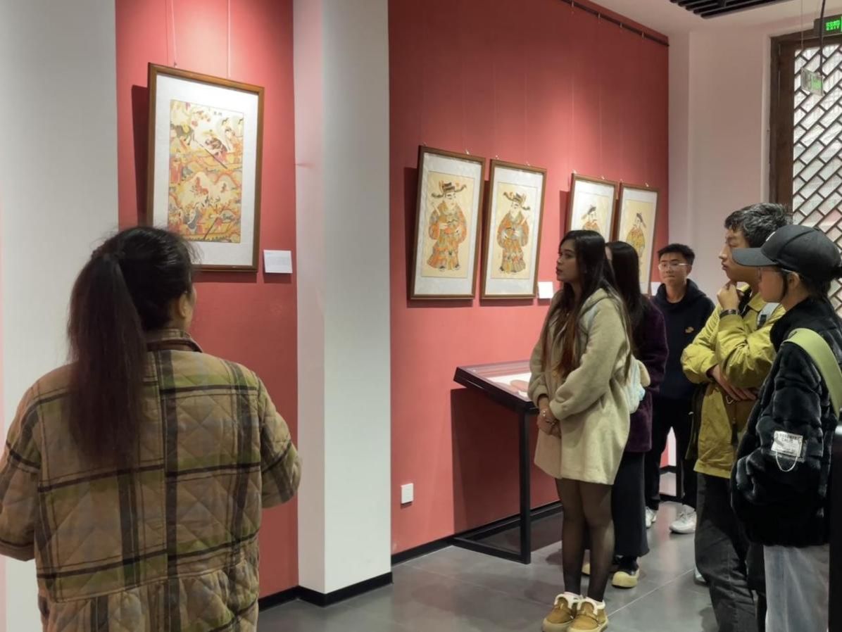 为深化学生对中华优秀传统文化的认知与理解,推动中外文化交流互鉴,2025 年 10 月 29 日,护理康养学院学生在李姝环、白熠皓两位老师的带领下,前往乐山夹江年画非物质文化遗产馆(以下简称 “非遗馆”)开展研学实践活动。此次活动亦吸引我院多名留学生积极参与,为这项古老的年画技艺注入了鲜活的国际活力。