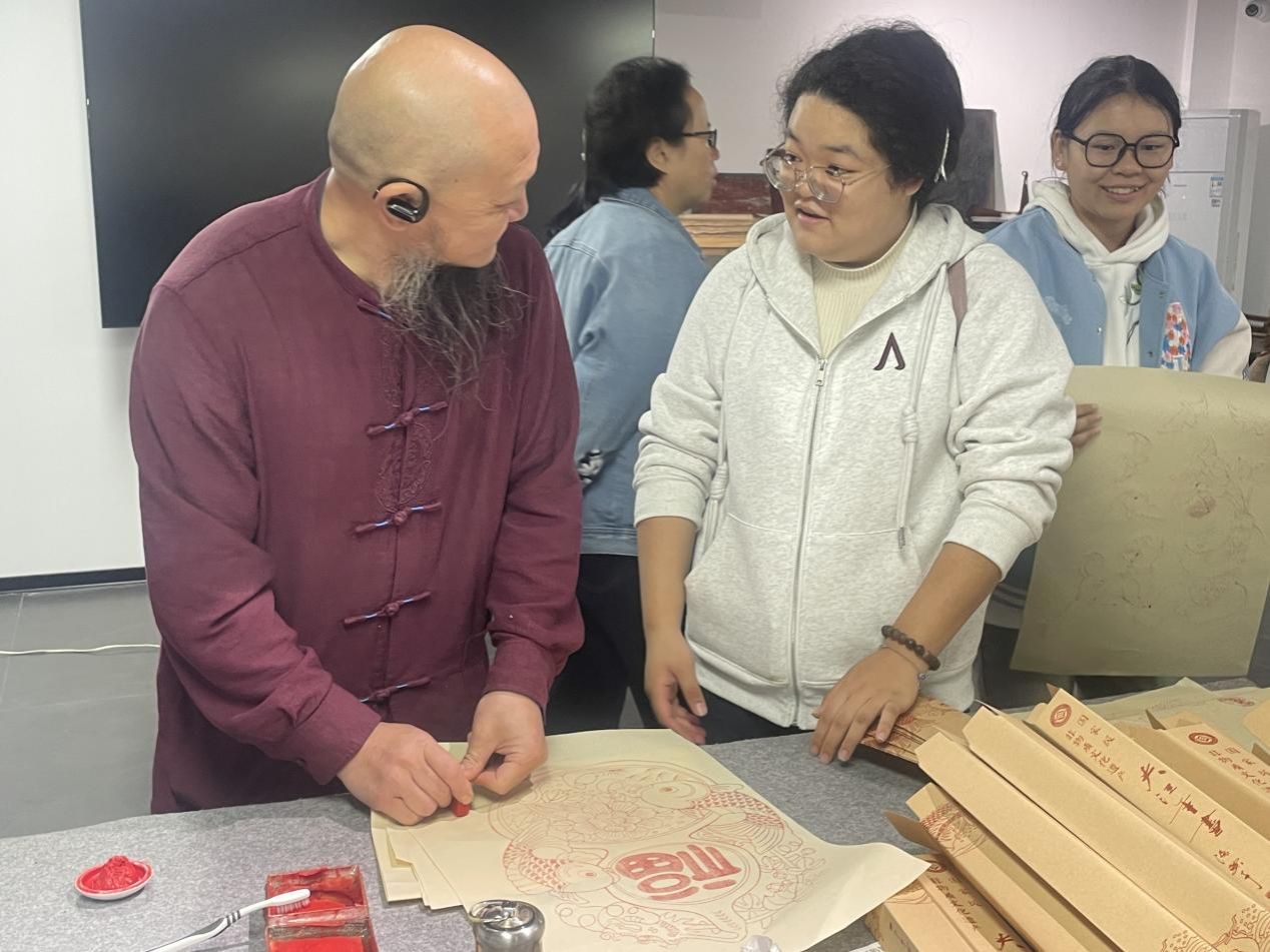 作为国家级非物质文化遗产项目,夹江年画以其浓郁的乡土气息、质朴的艺术风格及独特的制作工艺享誉国内外。活动期间,非遗馆专业讲师带领师生开启了一场沉浸式 “年画文化之旅”,不仅系统讲解了夹江年画数百年的发展脉络、源自植物与矿物的天然颜料制作秘方,更深入解读了各类民间传统年画图像背后蕴含的吉祥寓意与人文精神 —— 从守护平安的门神形象,到传递喜乐的福娃造型,从承载神话传说的经典题材,到反映民间生活的鲜活场景,每一幅年画皆如一扇文化窗口,让中外学子得以直观感知中国人民对美好生活的真挚向往与不懈追求。