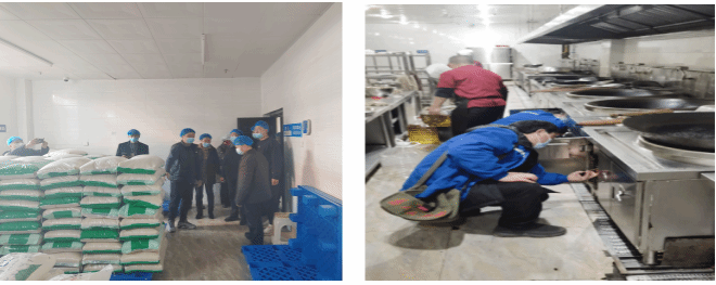 为保障食品安全,后勤处与海天公司开展了食堂环境卫生、餐具清洗消毒、大宗食品原料供应、库房食材保管、员工培训等检查,筑牢校园食品安全防线,为校园食品安全提供坚实的保障。