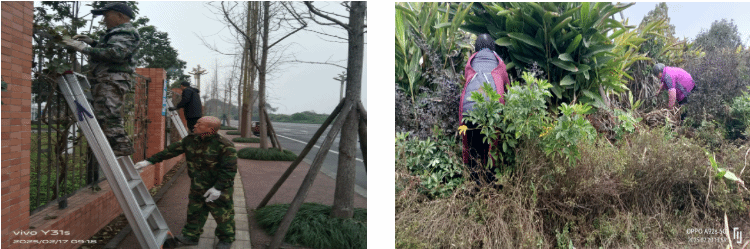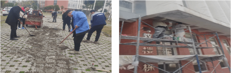组织对花园、空地进行了清除杂草、移木剪枝、浇水施肥、养护绿地等,为师生打造优美的工作生活环境。