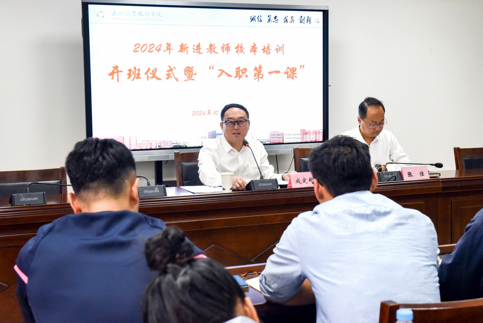 10月9日下午,学校2024年新进教师规范化校本培训开班仪式暨“入职第一课”在行政楼401会议室启动。学校党委书记成定彬出席并讲“入职第一课”,开班仪式由党委副书记、工会主席张佳主持。2024年全体新入职教师,相关部门负责人参加培训。