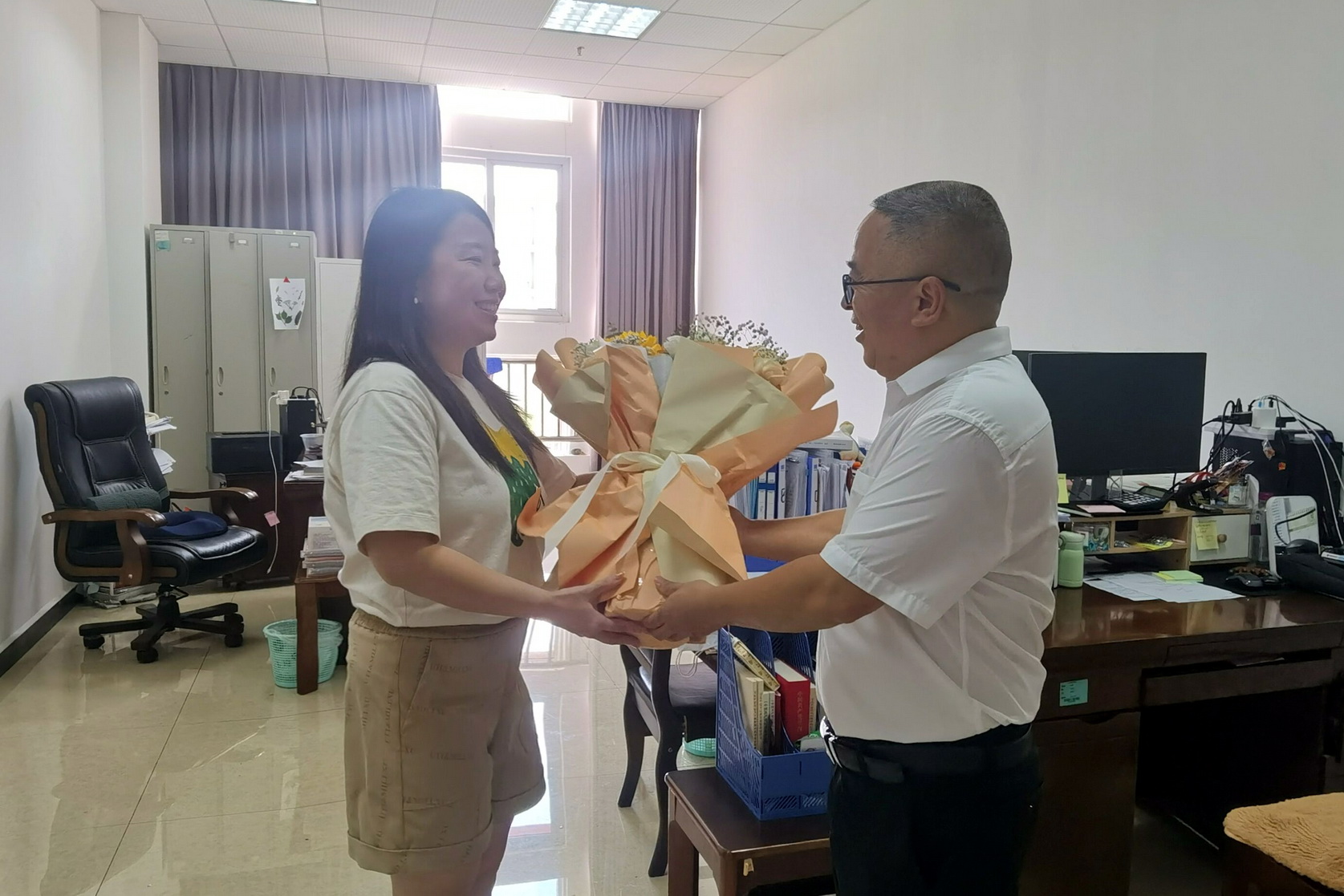 学校党委书记慰问张萌佳、江楠老师