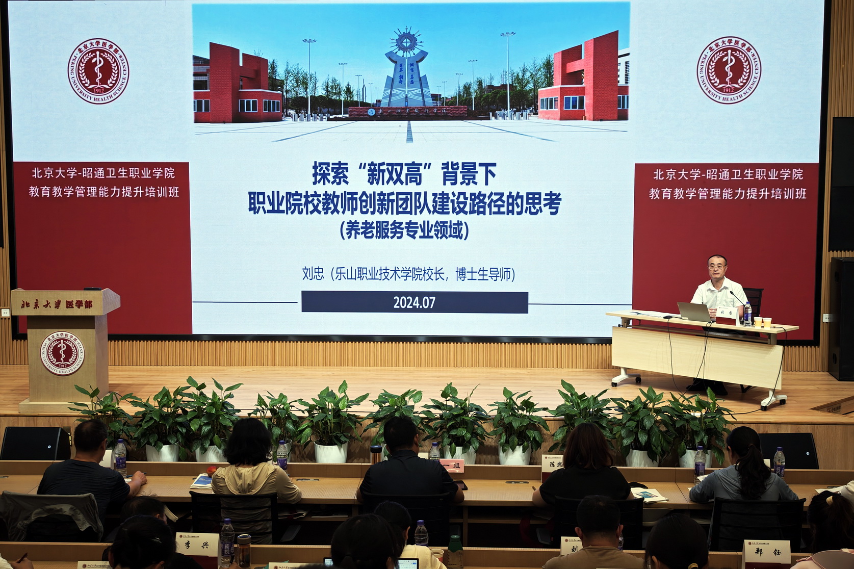 7月10日,beat365英国官方网站校长、博士生导师刘忠受邀到北京大学医学继续教育学院,为该院管理培训班学员作“国家级职业教育教师创新团队建设”专题授课。